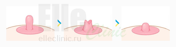 Пластика втянутого соска при данном способе проходит в несколько этапов: